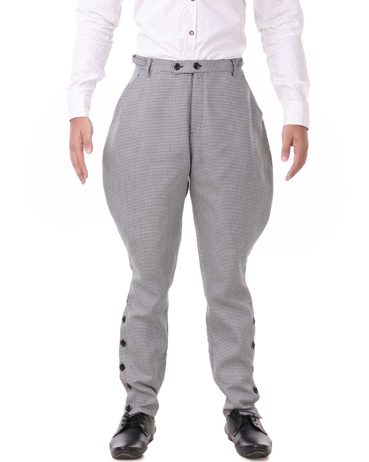 These pants have been inspired from the Jodhpuri style trouser of India to make you look like a prince. These exquisite pants are made in cotton blend fabric and has buttons from calves till ankle for a tight fit. The waist band has two side buckles for waist adjustment.