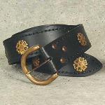 This belt is the perfect choice for almost any medieval knightly outfit. The extra long 80″ heavy grade leather belt is gorgeously accented with antiqued brass roses and a heavy duty buckle. Knightly Belt is also available in Brown.
