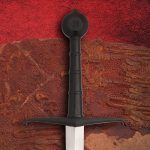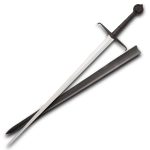 This sword was developed during a period when sword makers were feverishly experimenting to create a more capable sword that was effective against developing plate armor. This is a highly effective example of a thrusting sword with some cutting capability. Designed with a diamond cross-section, the blade is stiff enough to deliver a strong two-handed thrust through plate armor.
