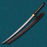 Handcrafted in a small town nestled in the Longquan mountains of China’s Zhejiang province, where the tradition of skilled swordmaking began over 2,000 years ago. Every part of this sword is expertly crafted by highly skilled smiths using centuries-old methods. The blade is pattern welded, with most of the blade Rockwelling in the 40-45 HRC range and about 35 HRC at the guard. The simulated hamon is expertly applied by an artisan. Each blade is honed and must be able to cleanly cut through a sheet of paper before it leaves the factory.