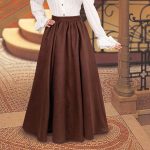 This wonderfully versatile skirt can be utilized with a wide variety of our costume pieces or ones of your own. Skirts like this were worn from the late middle ages through the beginning of the 20th century. Made of a beautiful brown poly fabric, this skirt features a pleated waistline and with a large hook and eye closure. Comes with four brown buttons, which can be used to decorate the skirt’s waistline. Skirt measures 40” in length. Brown only. Available in sizes S, M, L, and XL. Looks great with our Mina Steampunk Shirt