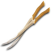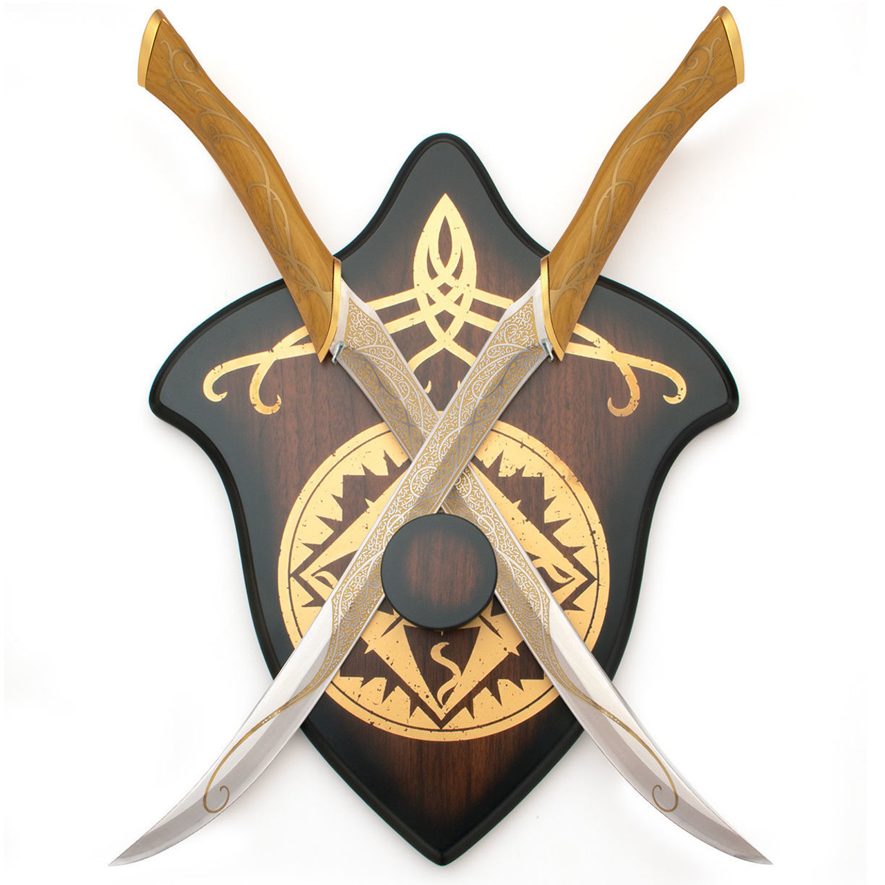 From the Lord of the Rings Trilogy, these officially licensed prop replicas from United Cutlery are made using only the finest grade materials and craftsmanship. Attention to detail was a top priority to ensure these blades match the actual filming prop as closely as possible, bringing to life the fighting knives wielded by Legolas Greenleaf. In the series, Legolas wields these twin fighting knives with incredible speed and savagery. This set of knives has razor-sharp stainless steel blades, handcrafted poly resin handles, and solid metal guards and pommels. Features Elven vine decorative accents and includes a display plaque and Certificate of Authenticity.