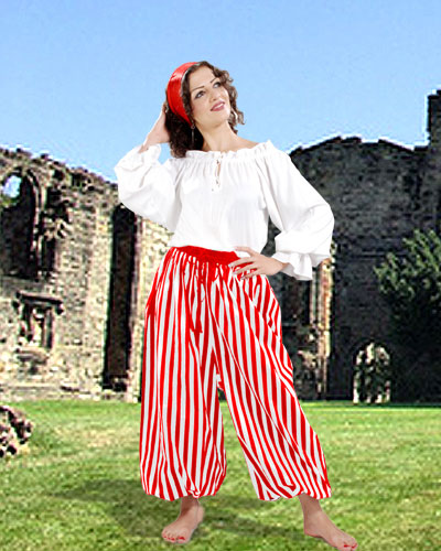 These pants are one of the most traditional and sincere designs of pirate clothing. Made from 100% cotton fabric, these pants are easy to maintain and use. Famous among both male and female pirates, these pants come in striped design in very desirable color combination. The pants are extremely comfortable & elastic attached at the waist and on the ankles make them easy to wear.