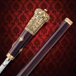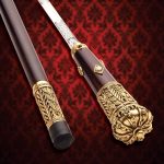 Before the official formation of the SIS (Secret Intelligence Service) in England in 1909, there were still many defenders in the service of Her Majesty and the crown. This magnificent sword cane is an example of just the type of clandestine piece which would have been carried by Queen Victoria’s secret bodyguards. All of the lavish metal adornments on the exterior of this piece have been expertly plated in 24-Karat gold and then antiqued.