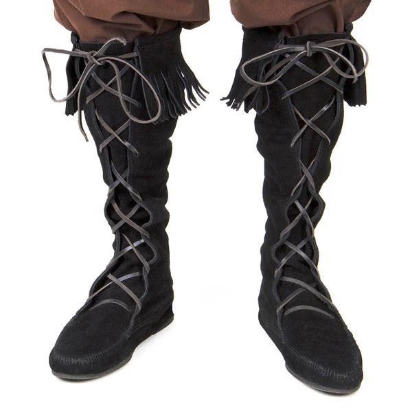 The most difficult part of completing a costume is footwear. These fringed, tall suede boots have a 1/8″ thick cushioned insole. They have a comfortable rubber sole so you can wear them all day long.