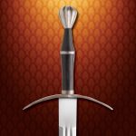 As large as this sword is, it is still amazingly light and well-balanced. The wide blade is forged of high carbon steel, while the pommel and crossguard have been antiqued with a darkened, aged finish. The large 7″ handle is wrapped in soft black leather with a steel separator ring and can easily accommodate two hands. Made by Windlass Steelcrafts. Includes scabbard. Arrives sharpened from the factory. Can be personalized with 3 Initials.